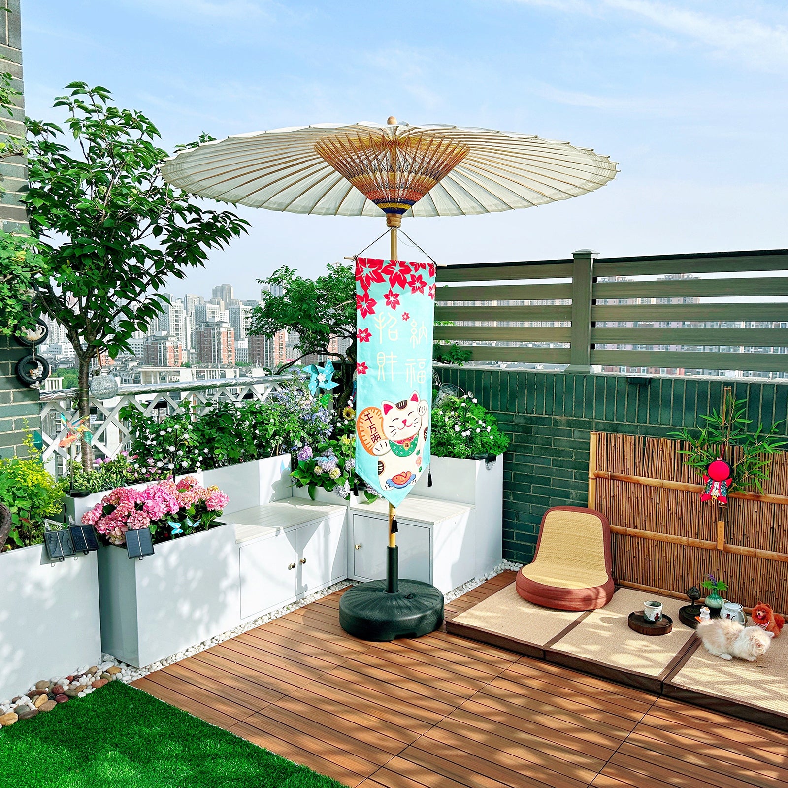 Large Chinese Oil Paper Patio Umbrella – Handmade Oriental Sun & Rain Parasol for Courtyard, Tea Garden & Outdoor Decor